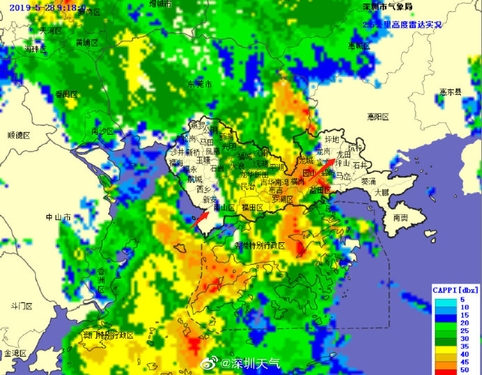 目前強(qiáng)降水中心已移至我市中部地區(qū),未來1-2小時內(nèi)東部地區(qū)將出現(xiàn)20-40毫米降水,深圳市氣象臺于2019年05月28日09時15分將暴雨黃色預(yù)警擴(kuò)展至全市,全市進(jìn)入暴雨戒備狀態(tài),請注意防范。