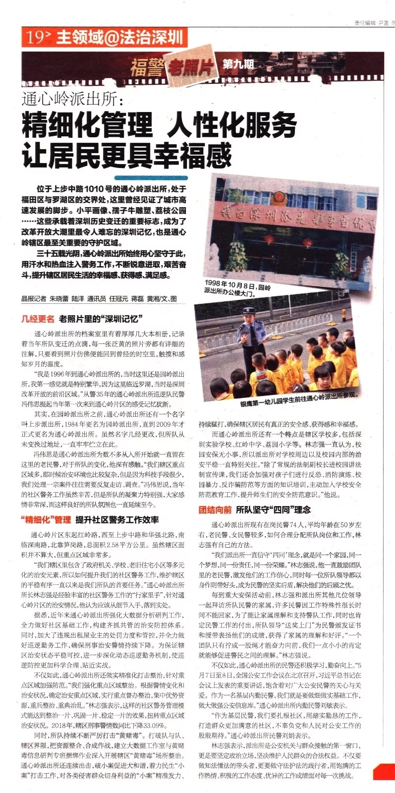 而通心嶺派出所還有一個特點是轄區(qū)學校多,包括深圳實驗學校、紅嶺中學、荔園小學等。林志強一直認為,校園安保無小事,所以派出所對學校周邊以及校園內(nèi)部的治安平穩(wěn)一直特別關(guān)注。