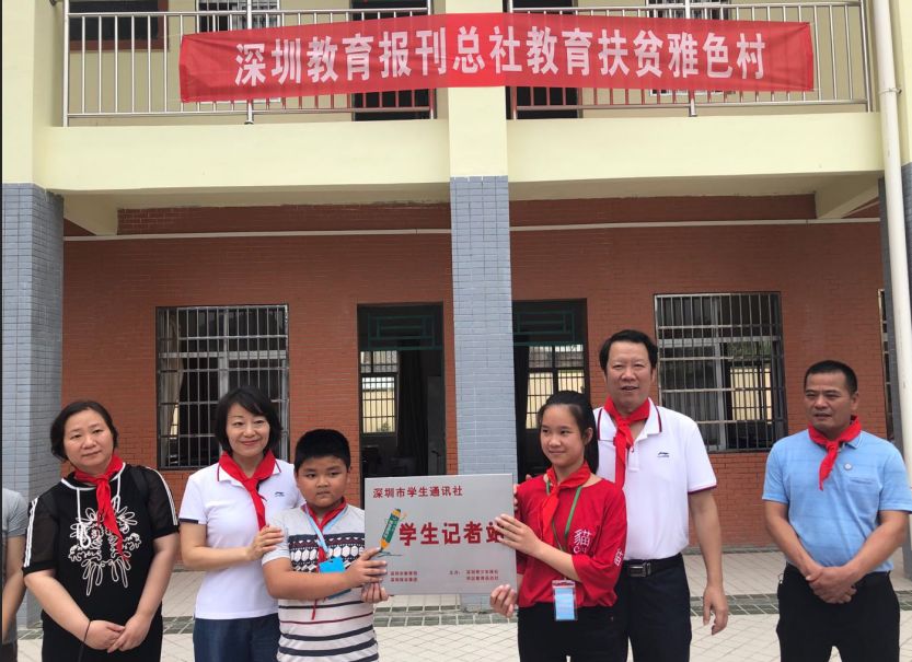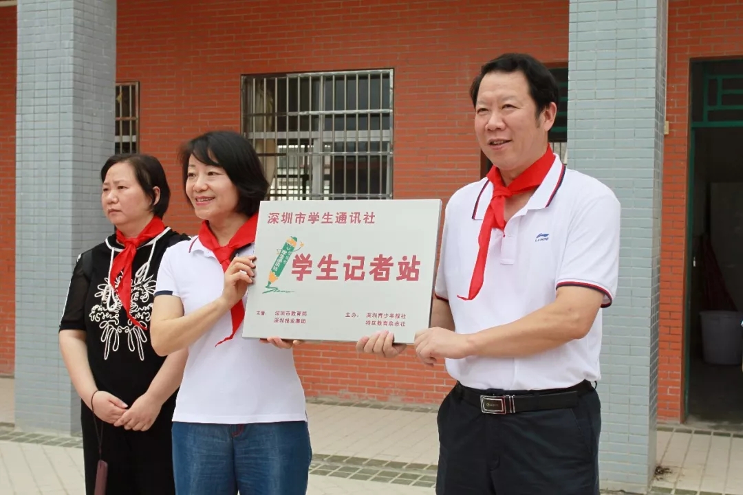 除舉行“報(bào)刊傳遞夢(mèng)想,愛心點(diǎn)燃希望”報(bào)刊圖書捐贈(zèng)活動(dòng)外,本次教育扶貧還有一個(gè)重要的任務(wù)——深圳學(xué)通社學(xué)生記者站在頌平小學(xué)正式掛牌。
