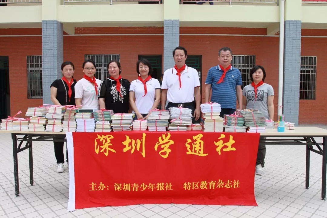 在捐贈(zèng)儀式上,同學(xué)們?yōu)檫h(yuǎn)道而來的叔叔阿姨系上了紅領(lǐng)巾,這些“大紅領(lǐng)巾”陪著“小紅領(lǐng)巾”,提前歡慶六一兒童節(jié)的到來??偵邕€為雅色的孩子帶來一份大禮,那就是深圳學(xué)通社學(xué)生記者站在頌平小學(xué)掛牌。