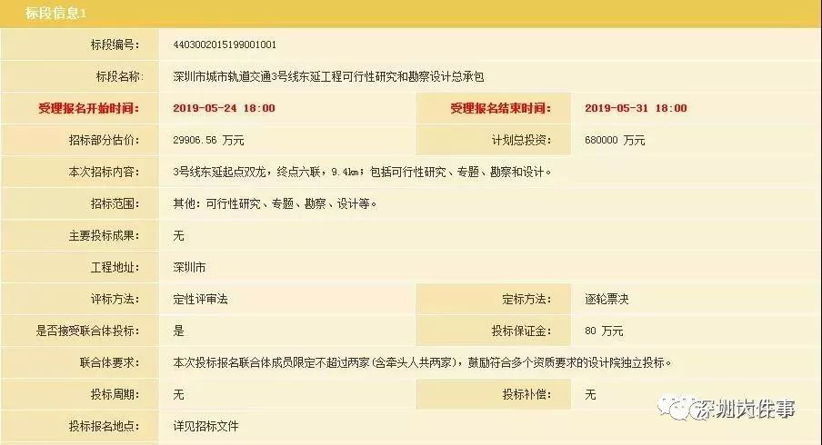2019年5月24日,深圳市住房和建設(shè)局公布《深圳市城市軌道交通3號(hào)線東延工程可行性研究和勘察設(shè)計(jì)總承包》招標(biāo)公告。
