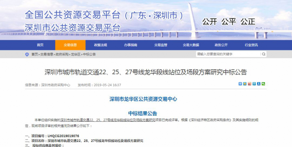 近日,深圳市公共資源交易中心發(fā)布了22、25、27號(hào)線一些方案的新消息。