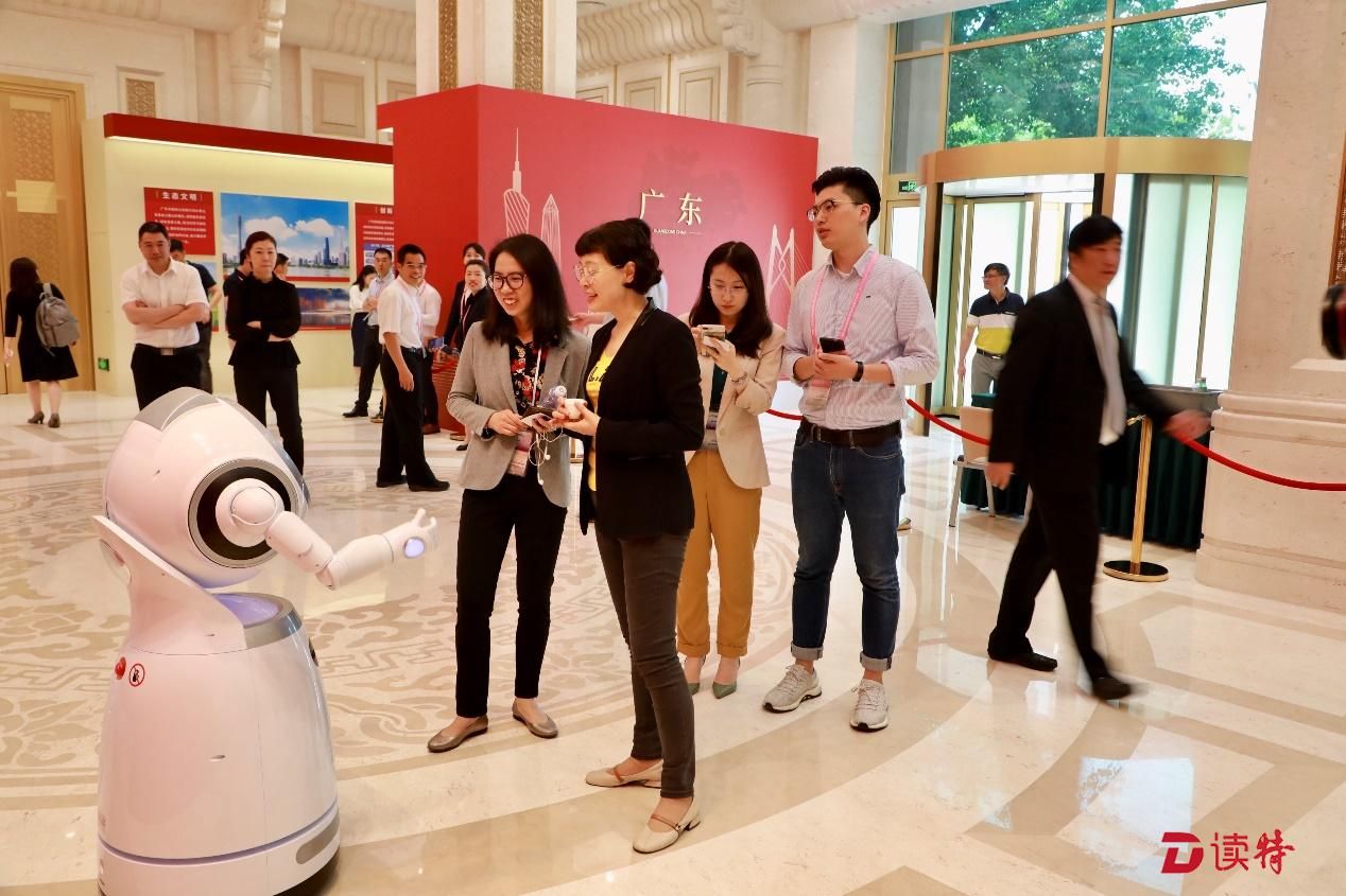這是優(yōu)必選機(jī)器人克魯澤正在向“新中國成立70周年廣東省成果展”觀眾介紹的一個(gè)場景。