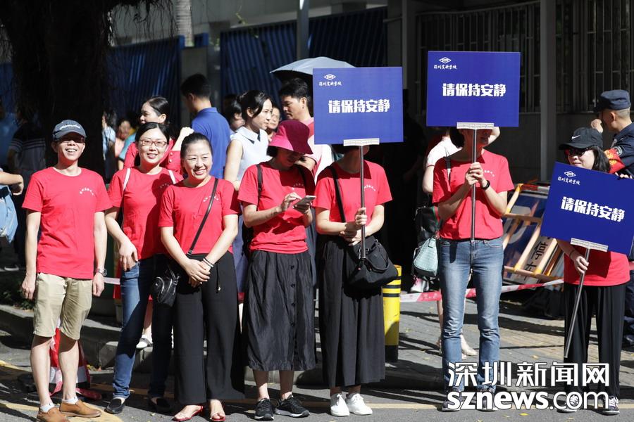 深圳實驗中學(xué)老師等待在考點外,為學(xué)生發(fā)放準(zhǔn)考證