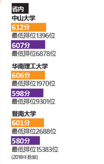 需要特別指出的是,去年廣東省合并一二本批次,在本科批次錄取時,率先錄取高分優(yōu)先投檔線(簡稱“高優(yōu)線”)上的考生。根據(jù)最終數(shù)據(jù)顯示,深圳6所本科高校投檔線全部在高優(yōu)線以上。