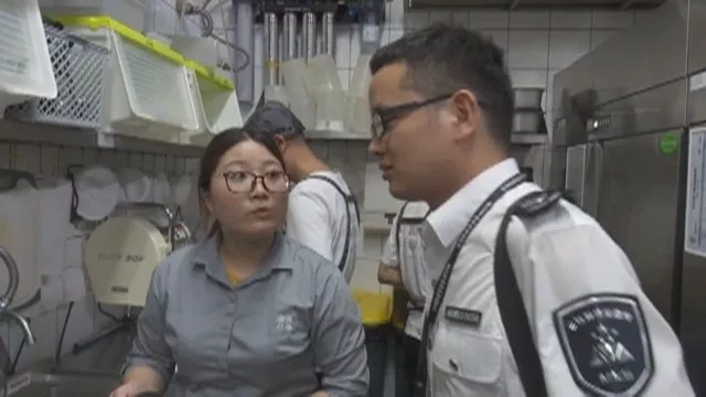 市監(jiān)部門執(zhí)法人員,看到半開放式操作臺,首先就詢問了負責(zé)人,是如何保障日常消毒工作的。