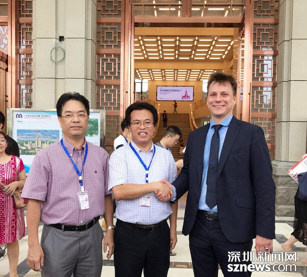 左起:深北莫黨委書(shū)記、副校長(zhǎng)陸萬(wàn)偉,深北莫代理校長(zhǎng)唐水源及副校長(zhǎng)阿列克謝·塔拉索夫合照