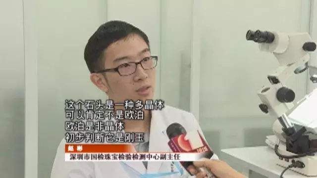 隨后工作人員對石頭的密度進(jìn)行測試,并確定不是先前拍賣公司說的“歐泊石”,而是剛玉。