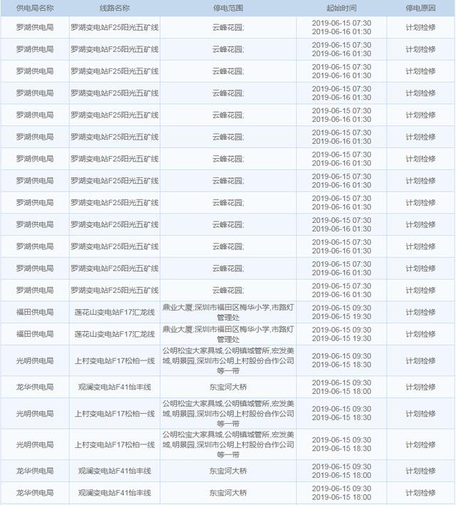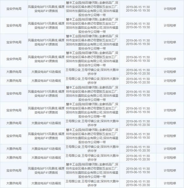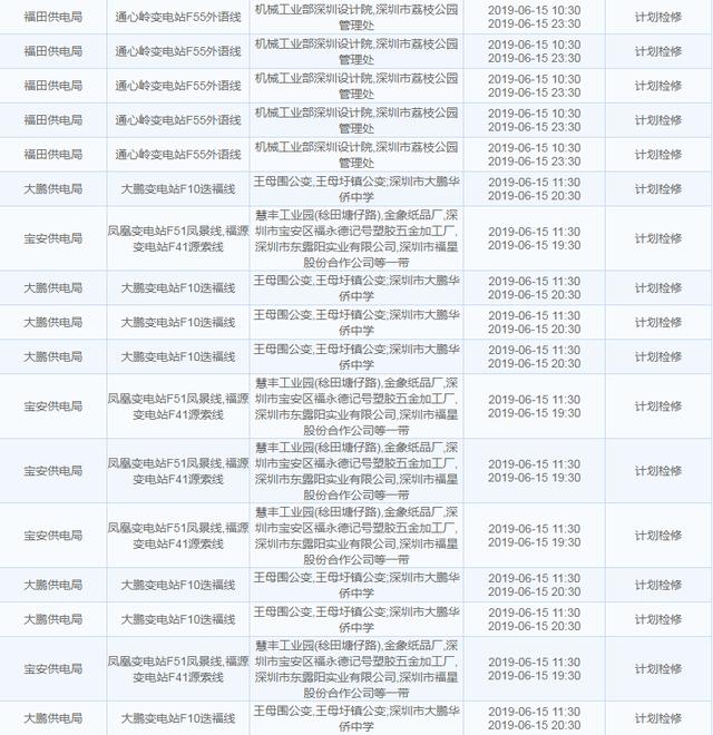 【6月15日停電計(jì)劃】