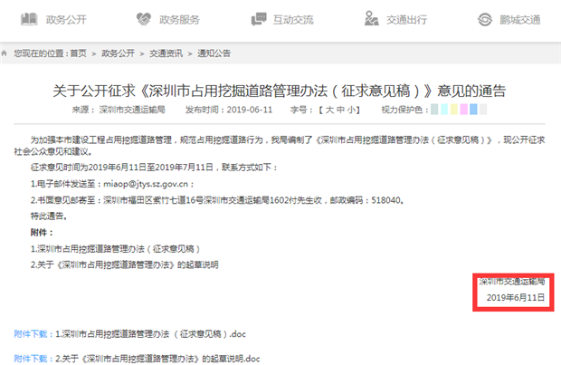 最近,《深圳市占用挖掘道路管理辦法(征求意見稿)》發(fā)布