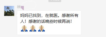 好消息!走丟兩天兩夜后,徐媽媽終于找到了