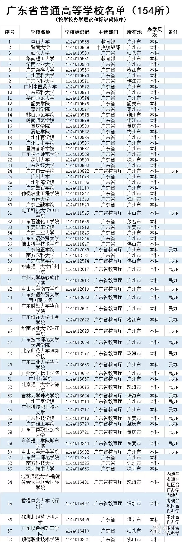 統(tǒng)計發(fā)現(xiàn),廣東有154所普通高校。與往年不同的是,今年廣東江門幼兒師范高等??茖W校、廣東財貿(mào)職業(yè)學院兩所新設立高校在省政府批準、教育部備案后,并正式啟動招生。