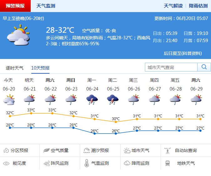 預(yù)計中考期間(6月22日至24日)天氣炎熱,部分時間有雷陣雨。其中,20日至22日多云炎熱,23日至24日多云間陰天,有雷陣雨,提醒考生做好防暑降溫準(zhǔn)備。