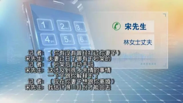 為了核實(shí)林女士的說(shuō)法,記者撥通了林女士丈夫宋先生的電話。宋先生沒(méi)有承認(rèn)家暴事實(shí),回應(yīng)的是相當(dāng)“委婉”。