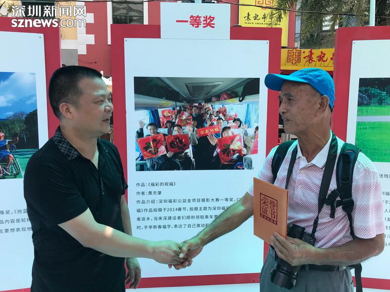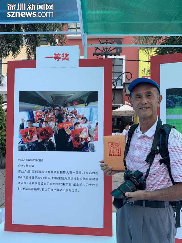 “我從報紙上看見深圳福彩舉辦的返鄉(xiāng)活動,覺得這個做公益獻(xiàn)愛心的活動讓我很感動。我想通過我的照片來彰顯深圳是一個大愛的城市,來讓大家看到深圳福彩的愛心宗旨?!?2歲的黃天肇憑借《福彩的祝福》作品榮獲本次大賽一等獎。作為資深的攝影愛好者,他從深圳福彩舉辦“愛心福彩資助來深建設(shè)者春節(jié)返鄉(xiāng)”活動開始,用相機(jī)記錄了十余年,“那個時候我都是用的傻瓜相機(jī)拍,獲獎的作品就是我用傻瓜相機(jī)拍的,直到這兩年才開始用數(shù)碼相機(jī)。”對于此次展覽,黃天肇認(rèn)為深圳福彩組織選出的98張照片,承載著深圳對孤寡老人、弱勢群體、特困戶的關(guān)心,彰顯了深圳人的大愛,也激發(fā)市民通過購彩的方式奉獻(xiàn)愛心,他表示會一直用照片銘記這些珍貴的記憶。