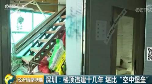 深圳福田區(qū)一個小區(qū)的居民日前爆料稱,小區(qū)一位業(yè)主違規(guī)在天臺上加建了幾層樓,遠(yuǎn)遠(yuǎn)看去就像一個“空中堡壘”,曾經(jīng)有人差點被上面掉落的鋼筋砸中,如此醒目的違建,已經(jīng)存在了十幾年。