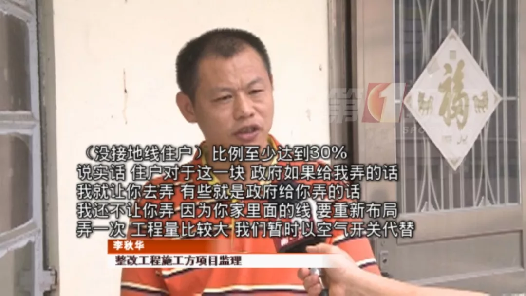 施工方表示,政府出資整修的是公共區(qū)域,他們?cè)谑┕み^程中發(fā)現(xiàn)很多房子存在電線老舊、沒有地線等隱患,但是房東不愿意出錢整改,唯有暫時(shí)以空氣開關(guān)代替漏電開關(guān)。