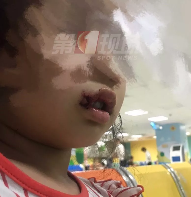 陳女士告訴記者,6月14號(hào)那天,女兒在泡泡池里玩的正開(kāi)心,沒(méi)想到在一個(gè)臺(tái)階處,孩子轉(zhuǎn)身去抱一個(gè)抱枕時(shí),不小心摔了一下,導(dǎo)致嘴巴被割傷。