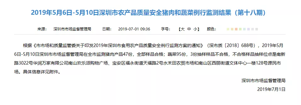 發(fā)布的豬肉產(chǎn)品和蔬菜抽檢結(jié)果就對(duì)啦!