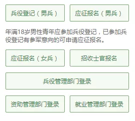 小編說:有些小伙伴看到這么多的菜單就有些懵了,其實不用緊張,如果你是第一次來的男生,直接從“兵役登記(男兵)”進入頁面就可以了;否則就從“應(yīng)征報名(男兵)”進入頁面;如果想報名招收士官,就從“招收士官報名”進入頁面,不過,今年的招收士官貌似還沒開始
