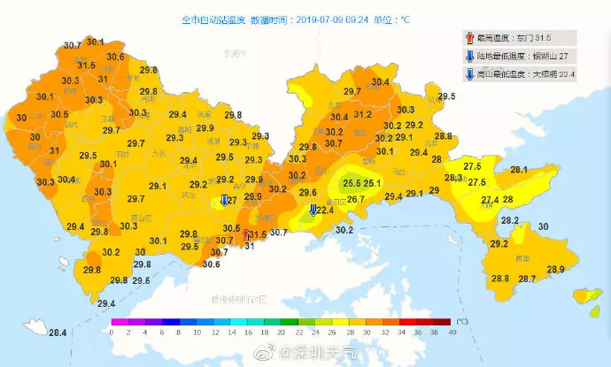 【深圳市天氣提示】10-11日有一次局地暴雨過程:預(yù)計9日多云炎熱,有陣雨或雷陣雨,氣溫28-32℃;10-11日有一次中到大雨,局部暴雨過程,伴雷暴和7-8級短時大風(fēng),炎熱天氣緩解;12-14日多云炎熱,有短時陣雨。請做好防暑降溫工作及防范雷暴、短時強(qiáng)降水、短時大風(fēng)等天氣帶來的影響。