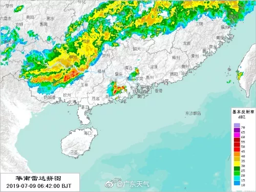 從今天早晨的雷達(dá)圖可見,廣東周邊省份已被狹長的降雨云帶控制,降水相當(dāng)激烈。另外,珠三角西側(cè)也有雷雨云團(tuán)生成。
