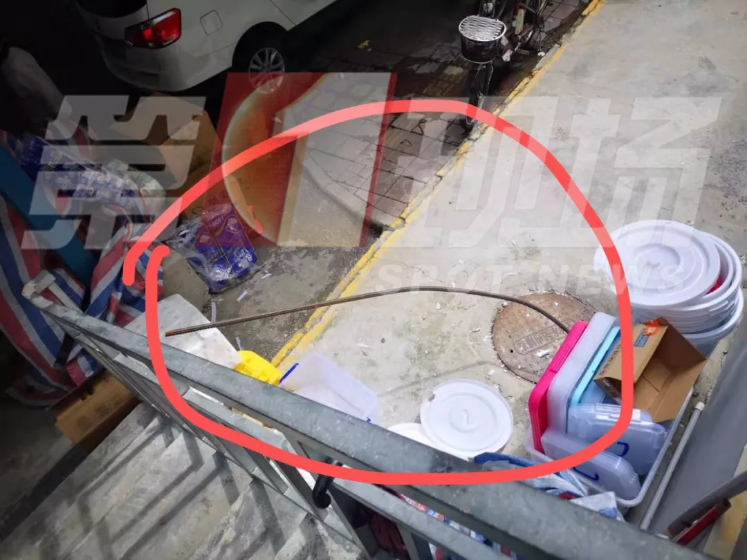 據(jù)目擊者介紹,在羅湖帝豪金融大廈附近,一根建筑鋼筋突然從高空墜落,砸在了路邊,連水泥地面都被鋼筋戳穿一個洞。