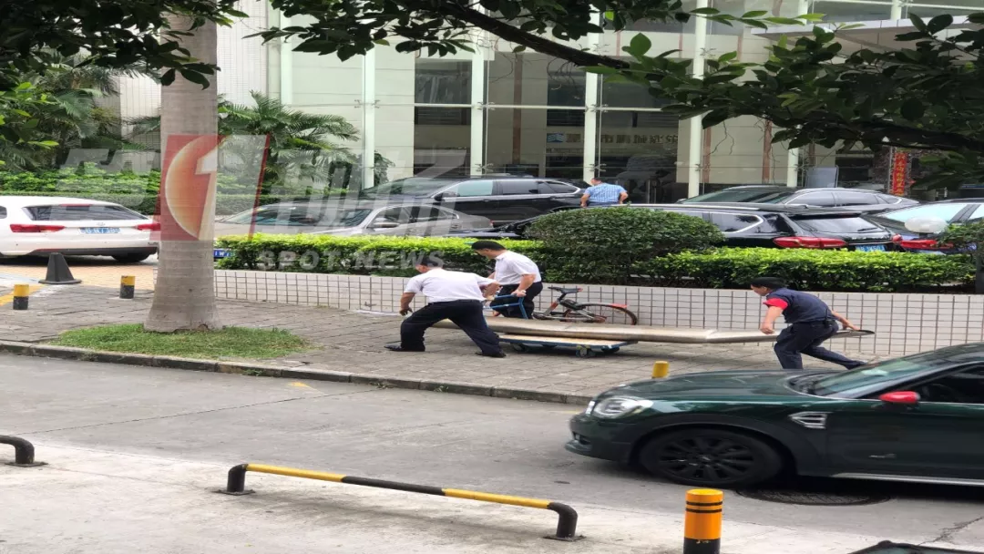 記者在現(xiàn)場看到,事發(fā)現(xiàn)場已經(jīng)被清理完畢,物業(yè)的工作人員正在設置安全警戒線,提醒行人注意避讓。