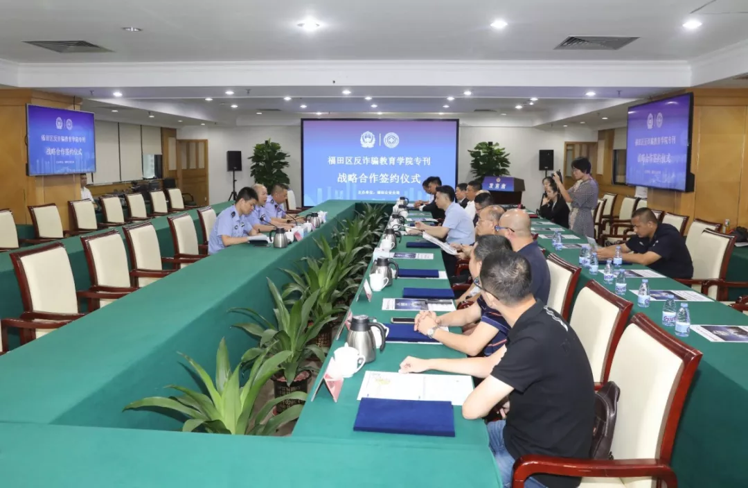 活動(dòng)現(xiàn)場(chǎng),福田分局分別與福田區(qū)委政法委、蓮花街道辦、北大深圳醫(yī)院、深圳外國(guó)語(yǔ)學(xué)校、中國(guó)郵政儲(chǔ)蓄銀行、聯(lián)想有限公司(深圳)、平安大廈物業(yè)、馬成時(shí)代廣場(chǎng)、卓越世紀(jì)廣場(chǎng)、山姆會(huì)員店、梅林農(nóng)批市場(chǎng)、順豐快遞共12家單位和企業(yè)簽訂了《福田反詐騙教育學(xué)院??瘧?zhàn)略合作協(xié)議》。