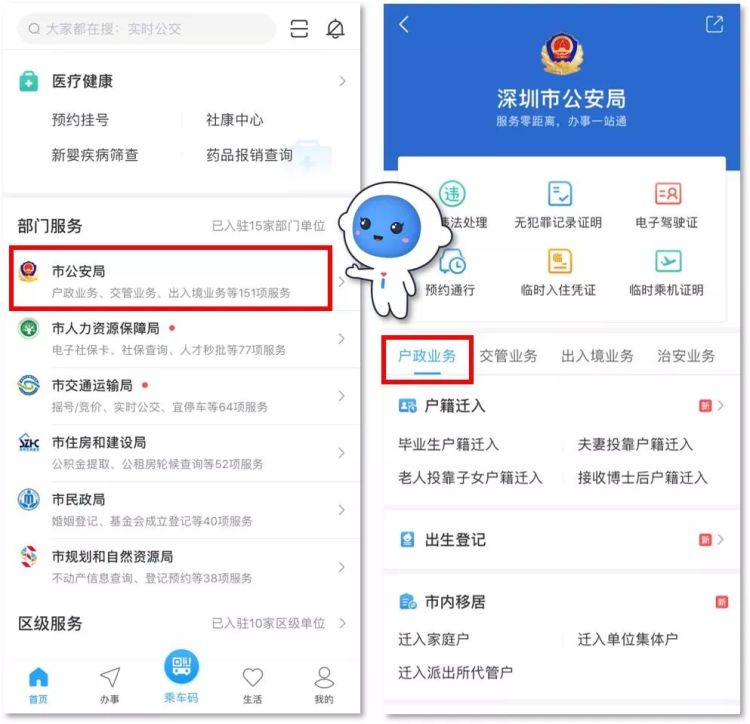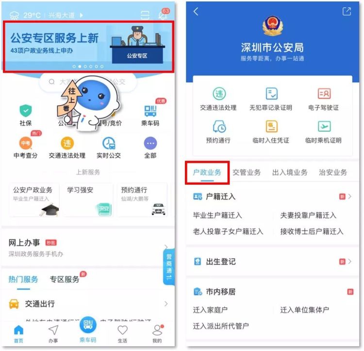 同時,市民也可從“深圳公安”微信公眾號菜單欄,進(jìn)入“民生”欄目中的“戶政業(yè)務(wù)”板塊,在線辦理上述服務(wù)。