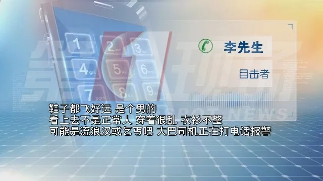 ▲男子從路邊沖出,臥倒在公交車下,當場身亡