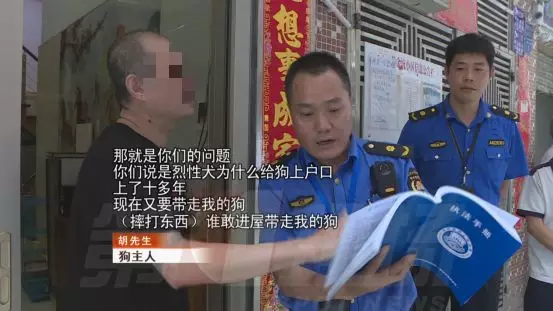 在對狗進行暫扣,還是狗主人自行處理的問題上,雙方各不讓步。胡先生的兒子打電話過來,事情出現(xiàn)了轉機。同意執(zhí)法人員把狗帶走,但胡先生必須全程陪同,觀察狗在暫扣期間是否受到了正常對待。