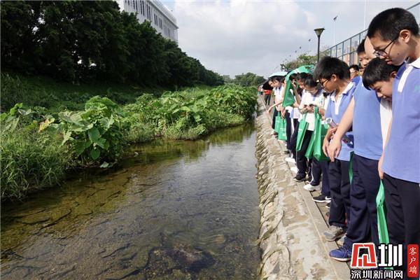 深圳新聞網(wǎng)訊(記者 彭桂紅 實(shí)習(xí)生 覃鈺清)7月13日早晨,艷陽高照,羅湖區(qū)外國(guó)語學(xué)校和志愿者協(xié)會(huì)志愿者共計(jì)60多名學(xué)生和家長(zhǎng)來到了深圳河支流——水庫排洪河河畔,在東益志愿者協(xié)會(huì)志愿者的帶領(lǐng)下實(shí)地了解了河道保護(hù)情況以及巡河志愿者的日常工作,同學(xué)們化身“小河長(zhǎng)”與志愿者一起為河道“體檢”。