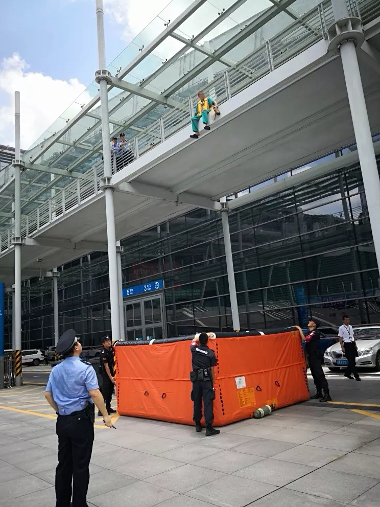 “阿伯,您先上來(lái),別沖動(dòng)!我們是警察,遇到什么困難跟我們說(shuō),我們盡量幫您解決!”吳第警官和緩地對(duì)男子說(shuō)。然而男子并不配合,甚至在外欄桿上躺下了。這個(gè)舉動(dòng)讓在場(chǎng)的所有人都倒吸了一口冷氣。
