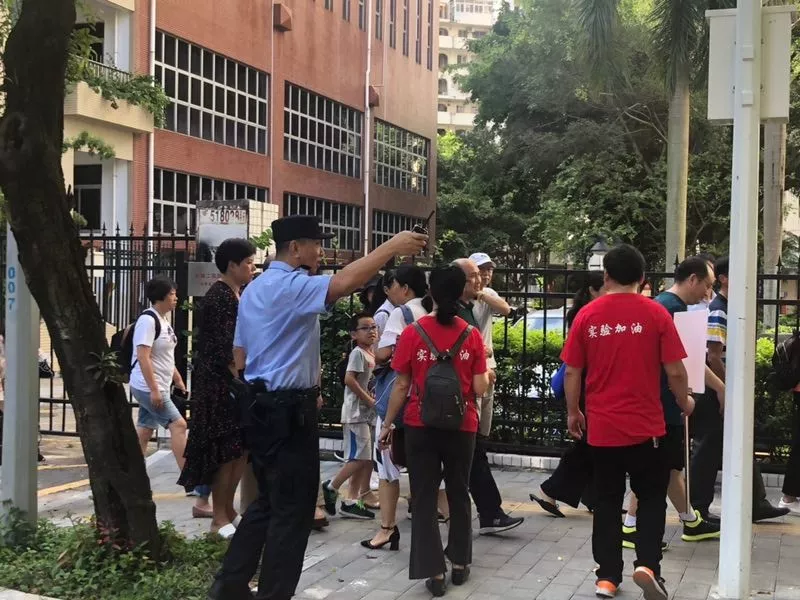 在深圳實(shí)驗(yàn)中學(xué)的校門(mén)外,正在執(zhí)勤護(hù)考的通心嶺派出所所長(zhǎng)林志強(qiáng)正跟送考的家長(zhǎng)們“嘮嗑”?!按蠹叶颊具@么久了,辛苦了!一會(huì)考試結(jié)束后,咱們來(lái)猜一猜第一個(gè)走出來(lái)的是男生還是女生。”“我猜是男生。”“我猜是女生。”家長(zhǎng)們一掃臉上焦急的表情,開(kāi)始笑著討論起來(lái)。