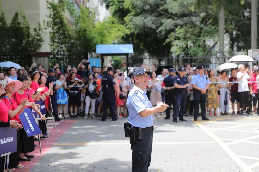 “鈴——”一聲長(zhǎng)鈴響過(guò)之后,從校門(mén)口走出了一名女學(xué)生。“啪啪啪……”場(chǎng)外的掌聲馬上響起來(lái),女孩愣了片刻,反應(yīng)過(guò)來(lái)后馬上紅著臉跑開(kāi)了,家長(zhǎng)們也都跟著笑起來(lái)。這時(shí),林志強(qiáng)趕緊組織好倒喇叭形人墻,一邊給隔離開(kāi)的家長(zhǎng)放行,一邊有序地疏散考生。45分鐘后,最后一名考生和家長(zhǎng)都離開(kāi)了考場(chǎng),從早上6點(diǎn)就守在考點(diǎn)的林志強(qiáng)這才稍稍松了一口氣。