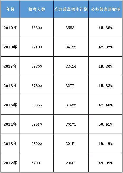 針對網(wǎng)友抱怨的,公辦普高的錄取率問題,小編手工統(tǒng)計了近8年來的普高招生計劃,部分數(shù)據(jù)可能有出入,僅供參考。