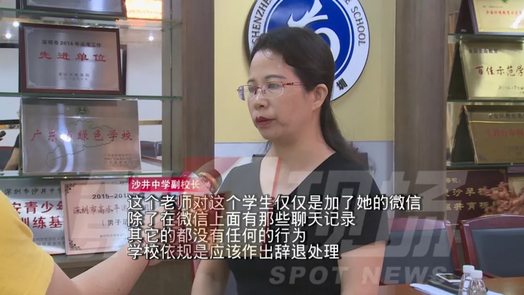 為詳細(xì)了解實(shí)際情況,記者來(lái)到了李先生女兒就讀的沙井中學(xué),學(xué)校的副校長(zhǎng)出面回應(yīng)稱,李先生反映的老師騷擾他女兒的情況確實(shí)存在,當(dāng)事人屬于臨聘教師,去年9月到該校任教,目前已經(jīng)被校方開(kāi)除。