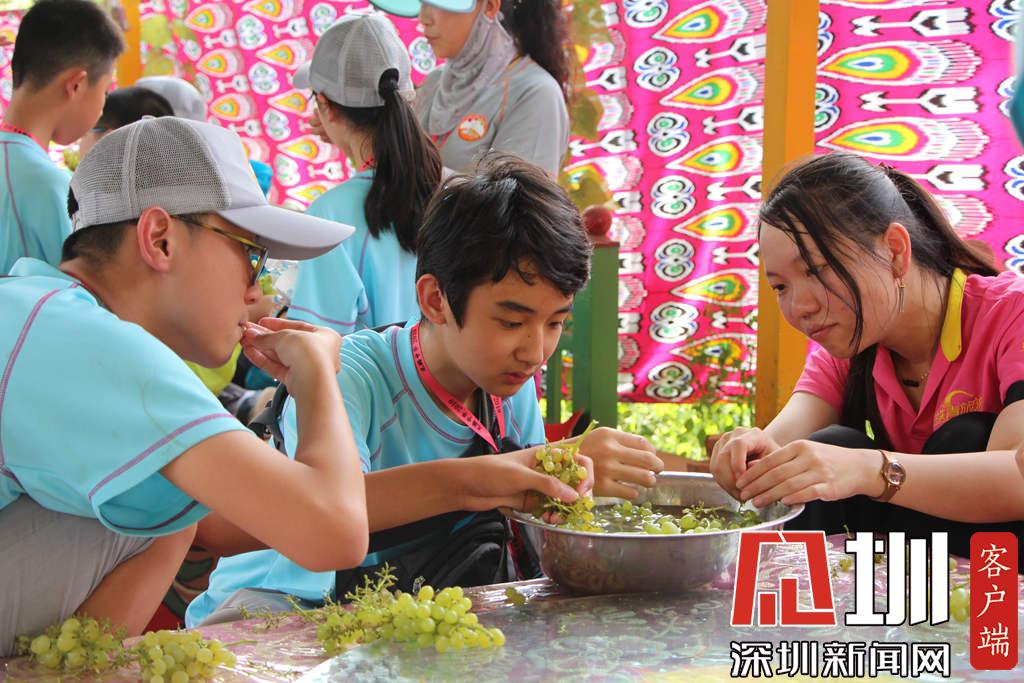 談起吐魯番此行,深圳育才第一小學(xué)五年級(jí)的學(xué)生巫鏑覺(jué)得葡萄溝最好玩,還可以摘葡萄,“這里葡萄很好吃,而且沒(méi)有核,還不用吐葡萄皮?!睋?jù)悉,吐魯番有600余種葡萄,其中的“無(wú)核白”葡萄最具特色,以無(wú)核、皮薄、味甜著稱。