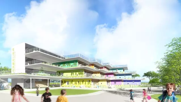 深圳市蓮花二村幼兒園重建校舍在緊張的用地中,首先退讓出一個(gè)完整的室外活動場地。通過立體剪裁出層層退臺的多元化的活動空間。南側(cè)向陽,北側(cè)遮雨,陰晴雨雪皆有孩子們的游樂天地。