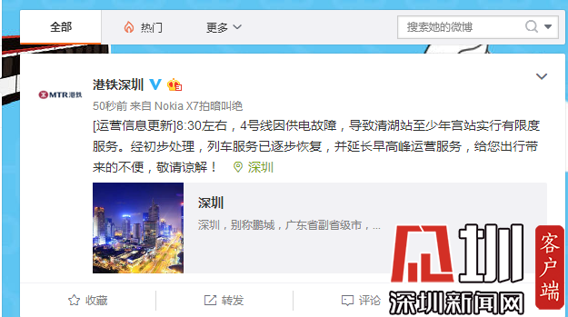 深圳新聞網(wǎng)2019年7月25日訊(見(jiàn)圳客戶(hù)端、深圳新聞網(wǎng)記者 韓翔 )7月25日早上,地鐵4號(hào)線出現(xiàn)故障,導(dǎo)致部分乘客延誤?!案坭F深圳”發(fā)微博稱(chēng)目前列車(chē)已逐步恢復(fù)服務(wù)。但據(jù)站內(nèi)廣播通知:由于供電故障,深圳地鐵4號(hào)線前往福田口岸的列車(chē)終點(diǎn)站更改為少年宮站。正值上班高峰期,記者在上塘地鐵站內(nèi)看到大量乘客滯留。