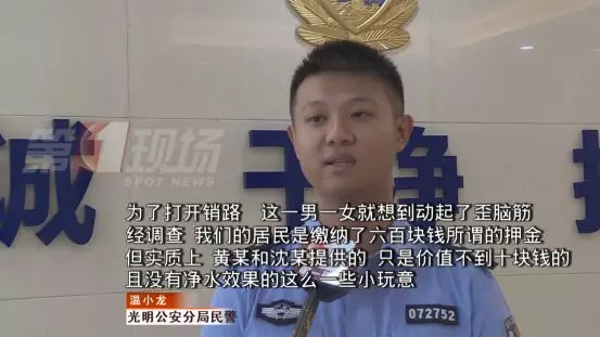 民警得知,有一男一女兩名自稱是“水質(zhì)管理局”負責自來水的工作人員打著“水質(zhì)不佳,水質(zhì)管理局規(guī)定必須安裝”的旗號,向居民推銷凈水器。由于有看似正規(guī)的工作證件,同時流程完善,還承諾事后可以根據(jù)需求退款,有不少市民都繳納了600元的押金,直至發(fā)現(xiàn)并沒工作人員上門安裝服務(wù)時,再向房東等人員核實后,才發(fā)現(xiàn)被騙。