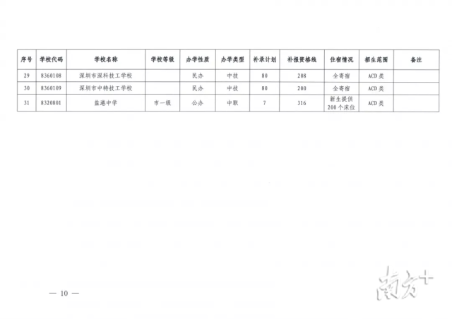 記者梳理發(fā)現(xiàn),目前,深圳市共有16所普高尚有擴招及補錄計劃,補錄人數(shù)2430人,最高補錄分數(shù)線為377分。此外,全市還有4所中職學校與7所中技學校進行擴招與補錄,補錄人數(shù)共1367人,最高補錄分數(shù)線為316分。