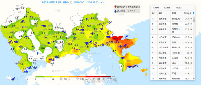 記者了解到,今日(30日)夜間深圳降雨趨于頻密,風(fēng)力明顯加大;31日-8月1日有暴雨局部大暴雨,其中31日早晨至夜間平均風(fēng)可達(dá)6-7級(jí),最大陣風(fēng)8-10級(jí),8月1日白天起風(fēng)力逐漸減弱,風(fēng)雨影響最嚴(yán)重時(shí)段在31日白天到夜間;2日有大雨局部暴雨;3日降雨減弱。