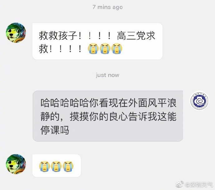 “深圳天氣”微博消息:全市停課。