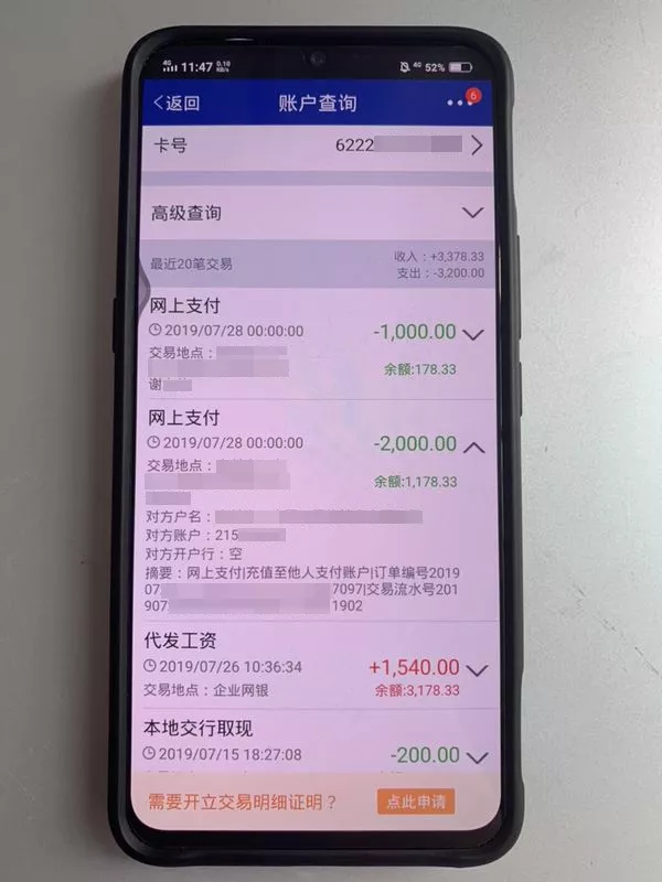 7月28日,事主張先生到八卦嶺派出所報(bào)案:發(fā)現(xiàn)自己銀行卡里的3000元不翼而飛了。細(xì)心的民警盧忠雄查看張先生的轉(zhuǎn)賬記錄,發(fā)現(xiàn)轉(zhuǎn)賬時(shí)間為當(dāng)天凌晨12時(shí)許,最終收款人竟然是張先生的熟人謝某。