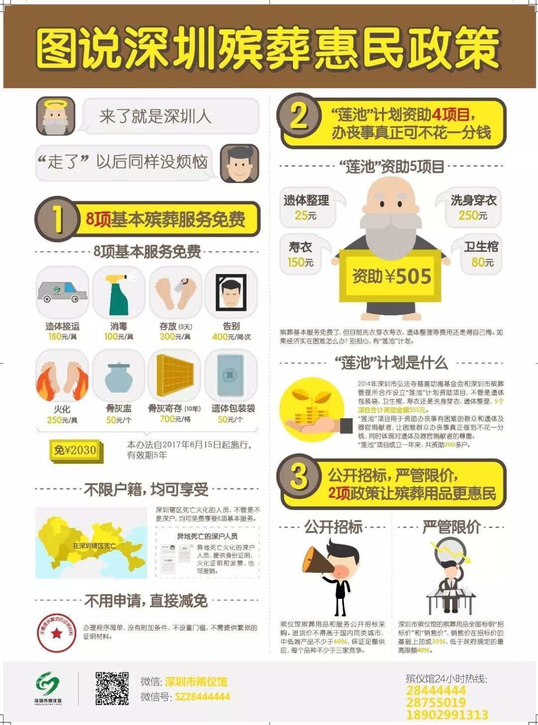 無(wú)論有沒(méi)有深圳戶(hù)籍,死亡面前人人平等,深圳殯葬基本服務(wù)免費(fèi)項(xiàng)目的辦理程序不設(shè)門(mén)檻,無(wú)需審批,也不用提供繁瑣的證明?!皩?duì)于困難群眾和器官捐獻(xiàn)者,可以申請(qǐng)深圳市殯葬管理所和深圳弘法寺慈善功德基金會(huì)發(fā)起的‘蓮池計(jì)劃’,真正實(shí)現(xiàn)困難群眾辦喪不花一分錢(qián)?!笔袣浌芩嚓P(guān)負(fù)責(zé)人表示,深圳還實(shí)施節(jié)地生態(tài)安葬獎(jiǎng)勵(lì),給予戶(hù)籍居民骨灰海葬按每具骨灰3000元獎(jiǎng)勵(lì),其他節(jié)地生態(tài)安葬(樹(shù)葬)按每具骨灰1000元獎(jiǎng)勵(lì)。
