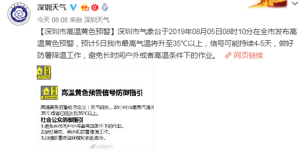 深圳晚報2019年8月5日訊 第7號臺風(fēng)"韋帕"還沒走多久,前陣子的降雨也只是給深圳稍稍降了溫。沒錯,今天又回到熟悉的節(jié)奏熱!熱!熱!早上8點多,深圳氣象臺就發(fā)布了高溫黃色警告。