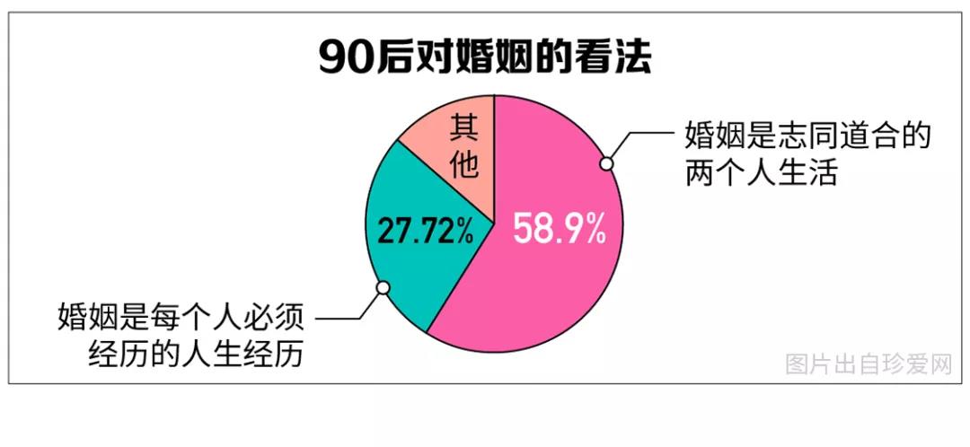 近6成90后認(rèn)為婚姻是志同道合的兩個(gè)人生活,認(rèn)為到了年紀(jì)就應(yīng)該結(jié)婚、婚姻是愛(ài)情的保障的單身男女則不到1成(7.97%)。另外,有近7成90后認(rèn)為成家立業(yè)可同時(shí)進(jìn)行,有11%的90后認(rèn)為可以先成家后立業(yè)。