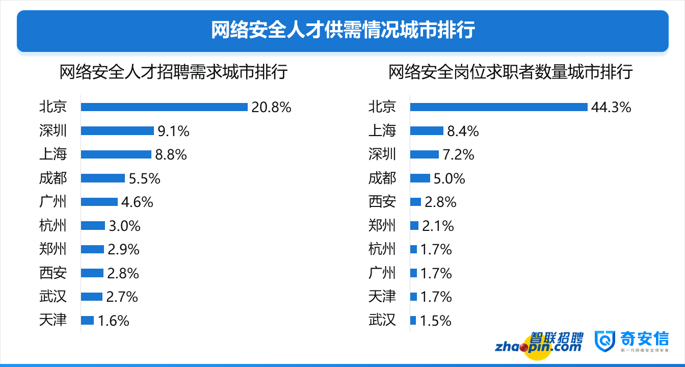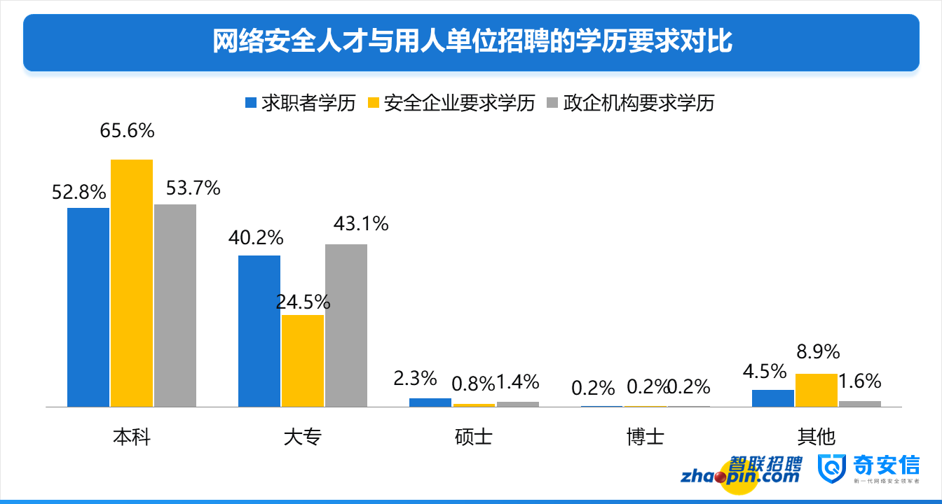 據(jù)了解,自2017年以來,智聯(lián)招聘與奇安信行業(yè)安全研究中心展開聯(lián)合研究,對涉及安全人才的全平臺招聘需求與求職簡歷進行分析,在需求變化,供需結(jié)構(gòu),用人單位特點以及人才自身特征等多個方面對網(wǎng)絡安全人才市場現(xiàn)狀展開了全面、深入的研究,并連續(xù)三年發(fā)布此項研究報告。